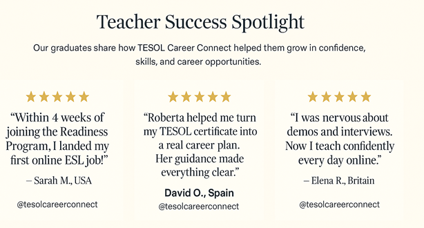 Join hundreds of new TESOL teachers who are building their careers with clarity and confidence.
